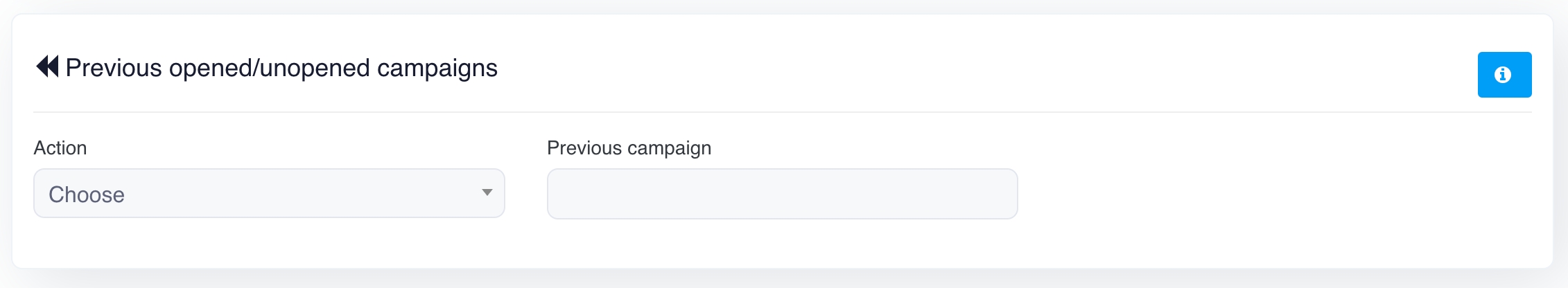 The Previous Opened/Unopened Campaigns feature allows you to take specific actions based on how recipients interacted with previous campaigns. This feature provides the ability to re-engage with contacts based on their previous behavior (whether they opened or didn’t open an earlier campaign).