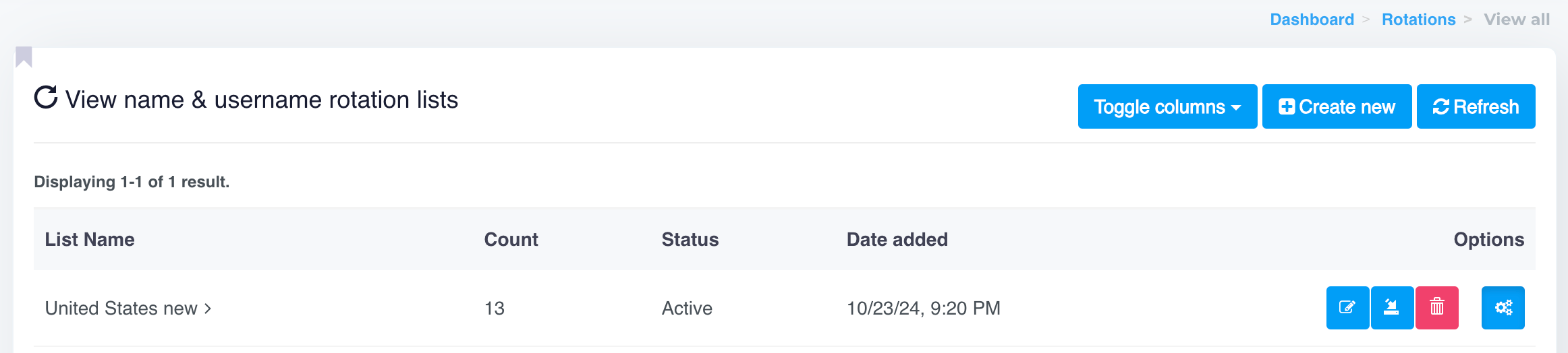 * Go to **View Name & Username Rotation Lists** to create a new list.