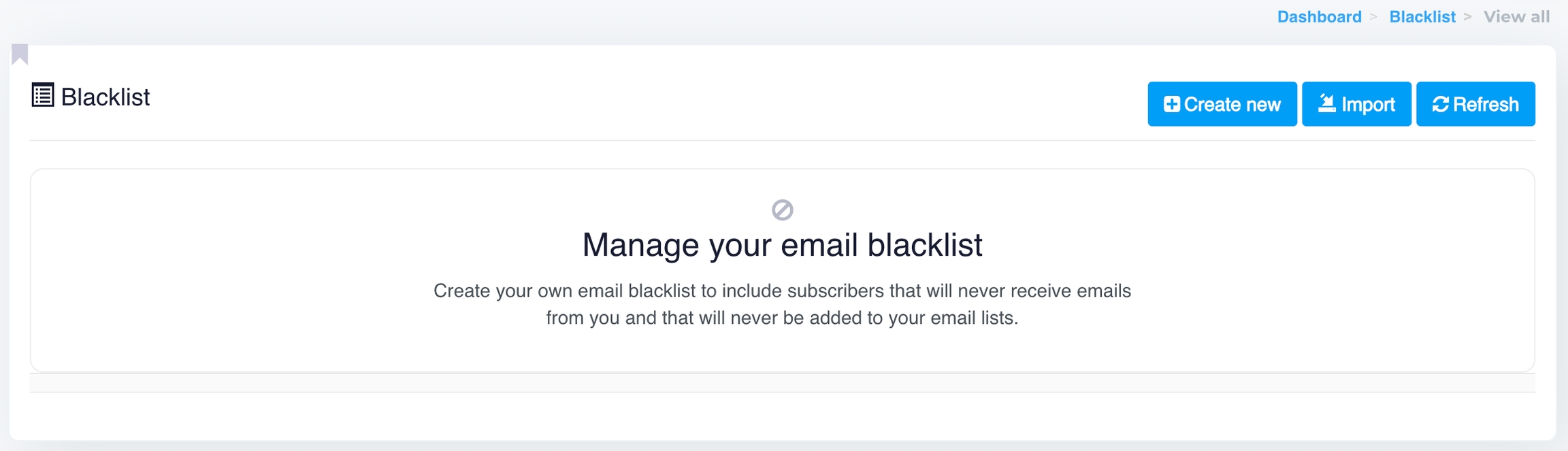 The blacklist helps you ensure that problematic or unwanted recipients are never added to your campaigns. Recipients in the blacklist: