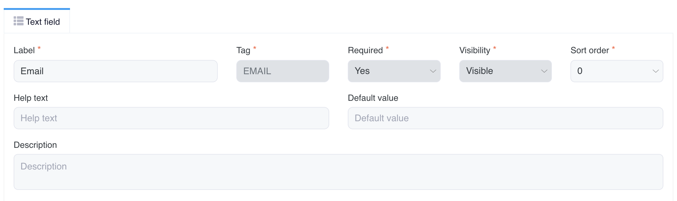 * **Help Text**: (Optional) A short description to guide users on what to enter in the field.