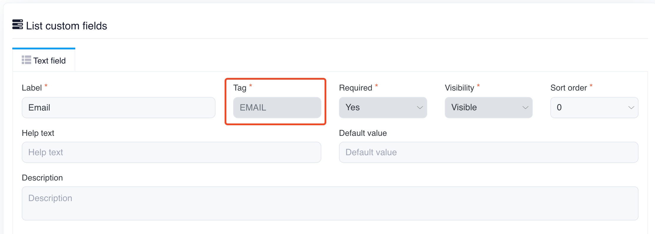 * **Tag**: The system identifier used to reference the field (e.g., "EMAIL," "FNAME," "LNAME"). This is what you'll use when personalising your emails.