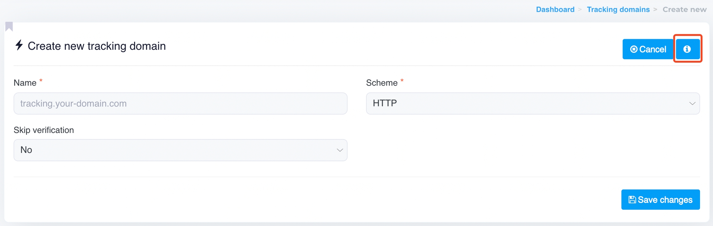 Before saving the changes, ensure that your tracking domain (tracking.your-domain.com
