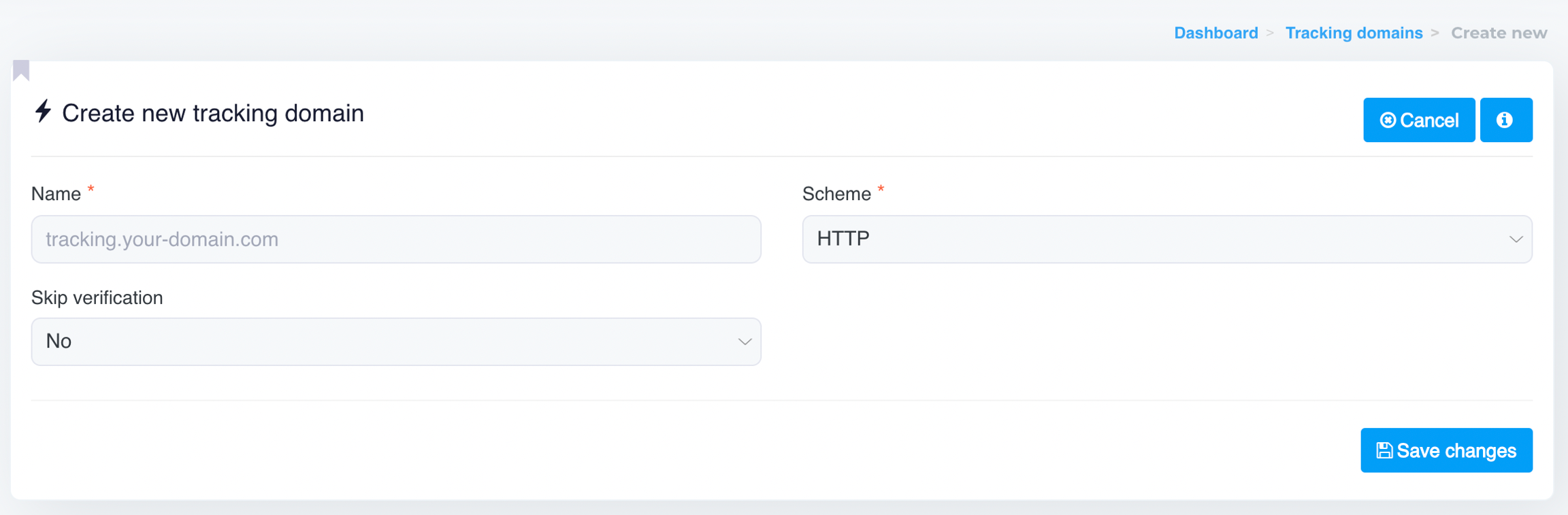 tracking.your-domain.com). Ensure this subdomain is configured in your DNS records before proceeding.Skip Verification: Choose whether to skip domain verification. This is usually set to No unless you’re sure the domain is pre-configured correctly.