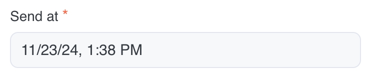 In the confirmation stage, under the Send at field, choose the desired date and time for the campaign to trigger using the calendar and clock options.