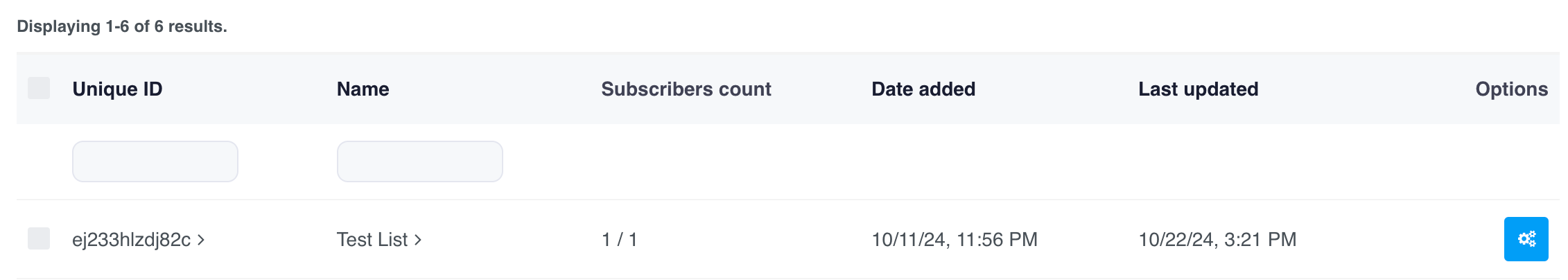Last Updated: This column shows the last time the contact list was modified, such as when subscribers were added, removed, or edited. Keeping this information visible helps you stay informed about the recent activity on each list.
