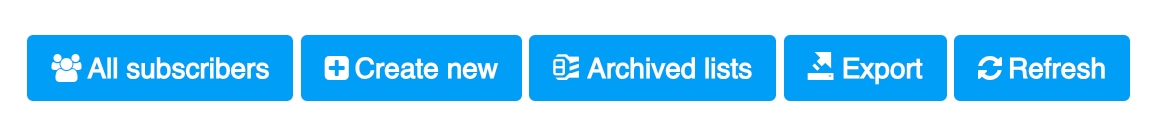 At the top of the dashboard, you’ll find several buttons for managing your contact lists: