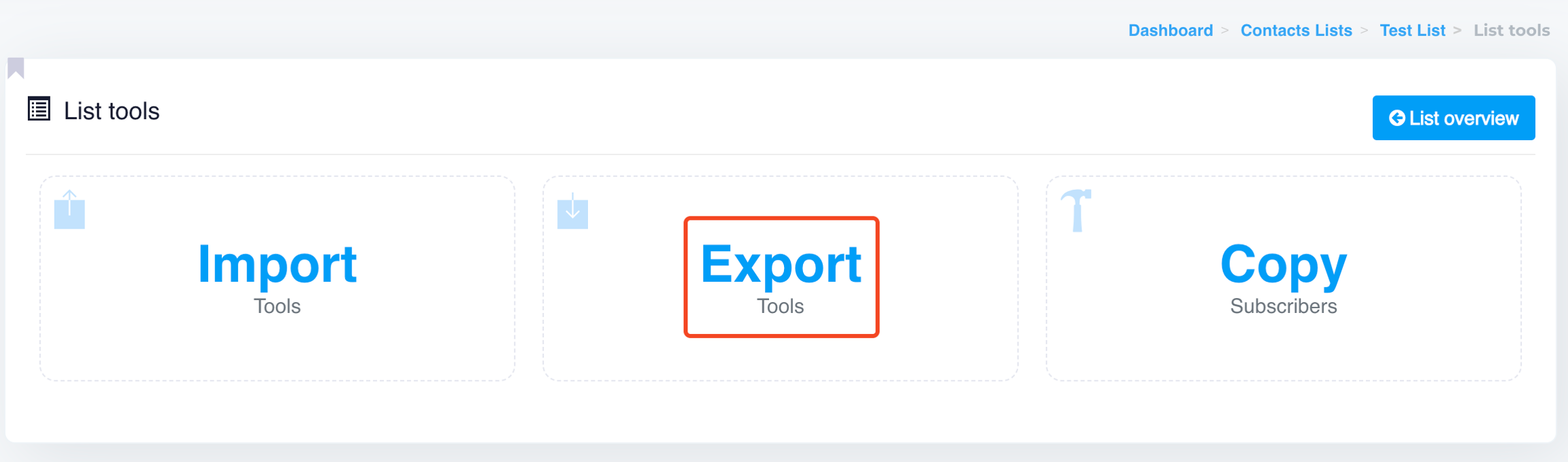 These export options give you flexibility in managing your contact lists, allowing you to export complete lists, specific fields, or filtered data like unsubscribes or bounces.