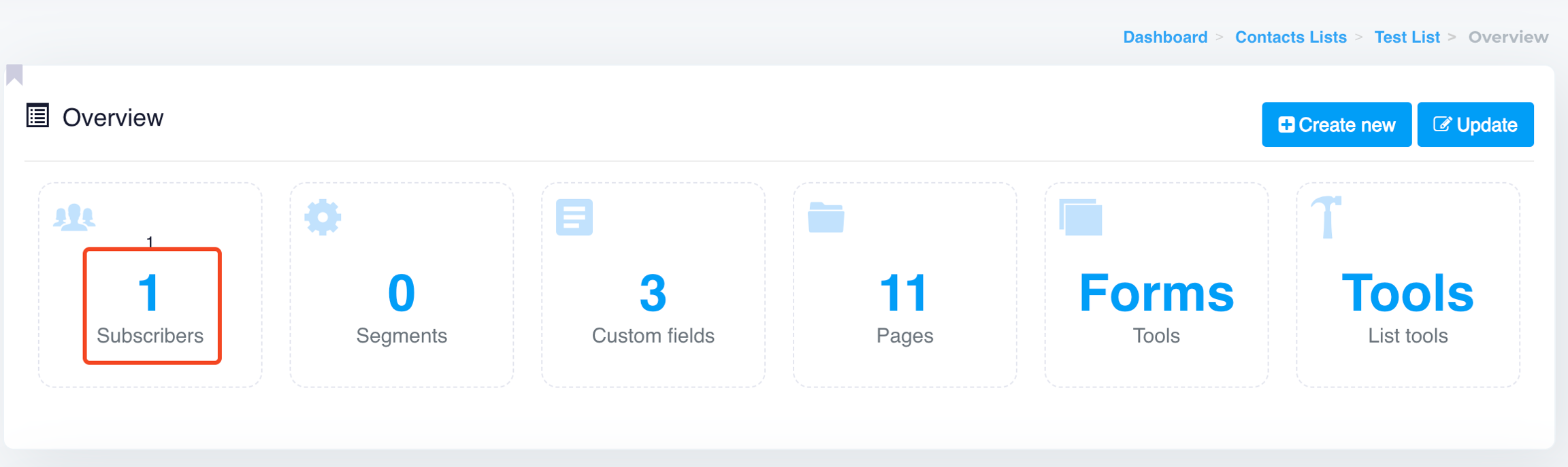 Open contact list in which you want to add the subscribers.