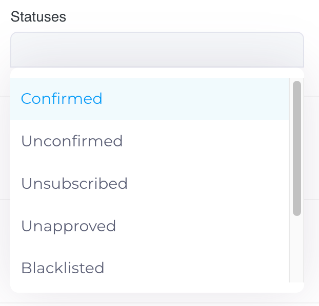 Unconfirmed: Subscribers who haven't confirmed their email, so they won't receive emails yet.