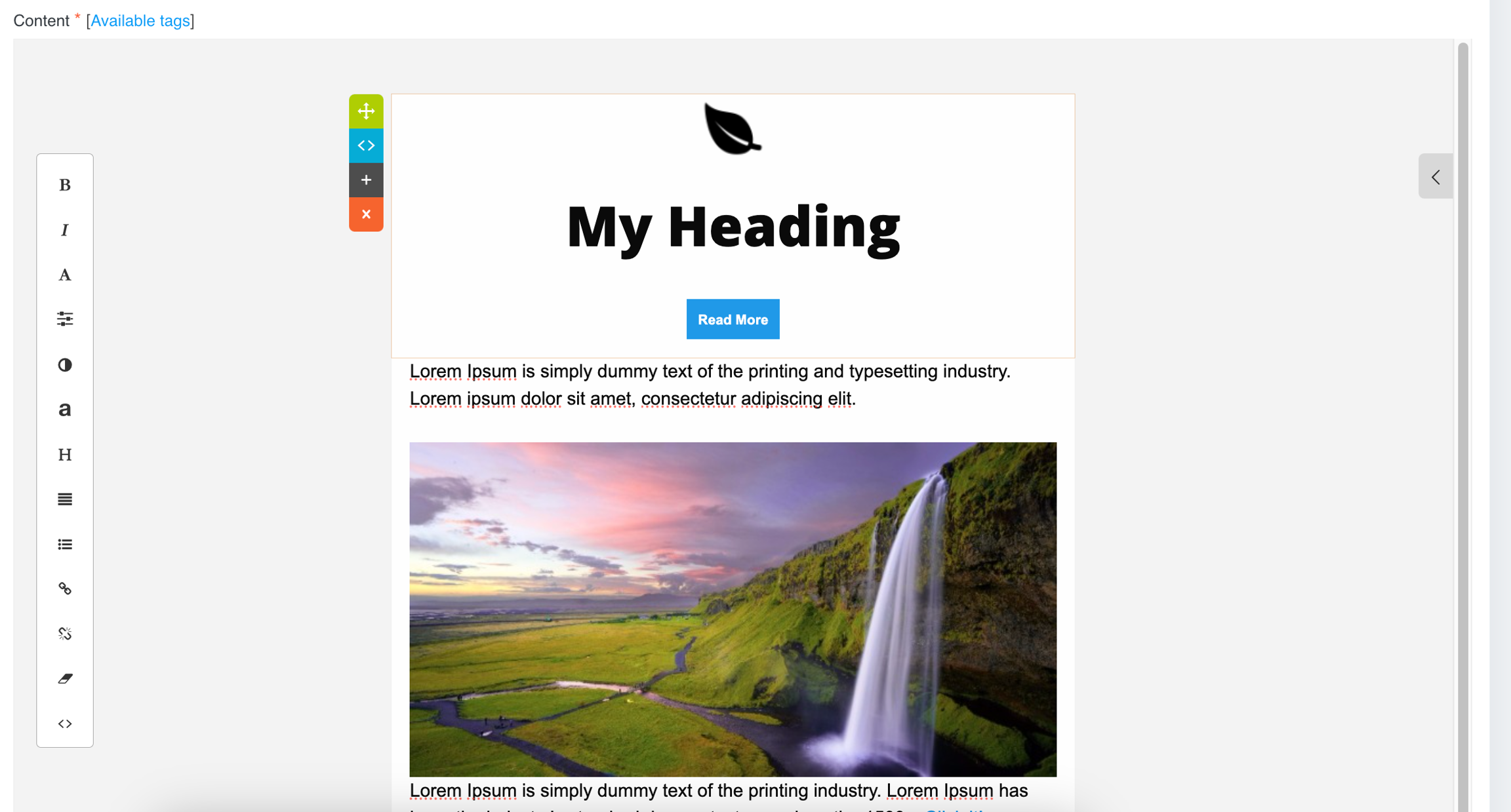 Image Blocks: Insert images to make your email visually appealing. Ensure that the images are optimized for quick loading.